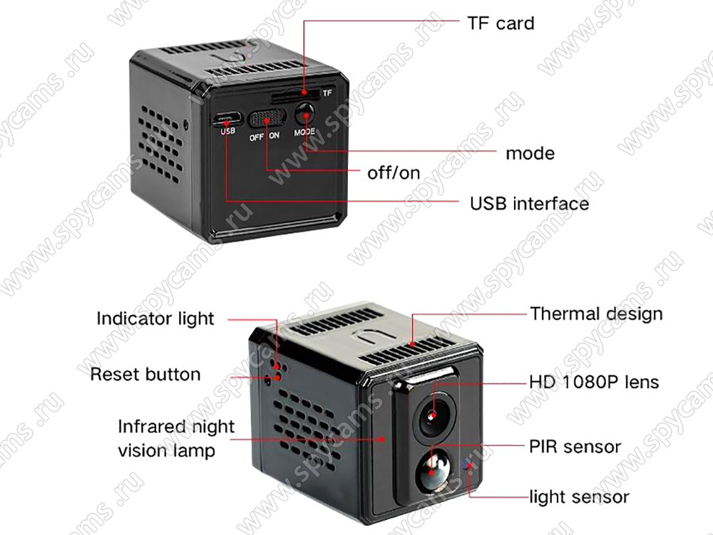 Миниатюрные размеры – 50х37х37 мм! Данная модель камеры является одной из самых компактных автономных камер со встроенным регистратором, представленных на рынке!