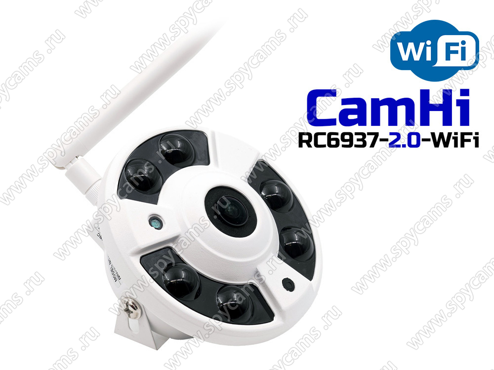 Широкоугольная антивандальная Wi-Fi IP камера наблюдения 2Mp «CamHi RC6937-2.0-WiFi» с объективом рыбий глаз (FishEye) 140гр - поддерживает функцию удаленного просмотра трансляции видео через приложение CamHi/ CamHi Pro (Android, iOS, ПК), оснащена 2 мегапиксельной матрицей (разрешение матрицы 1920x1080 FullHD).