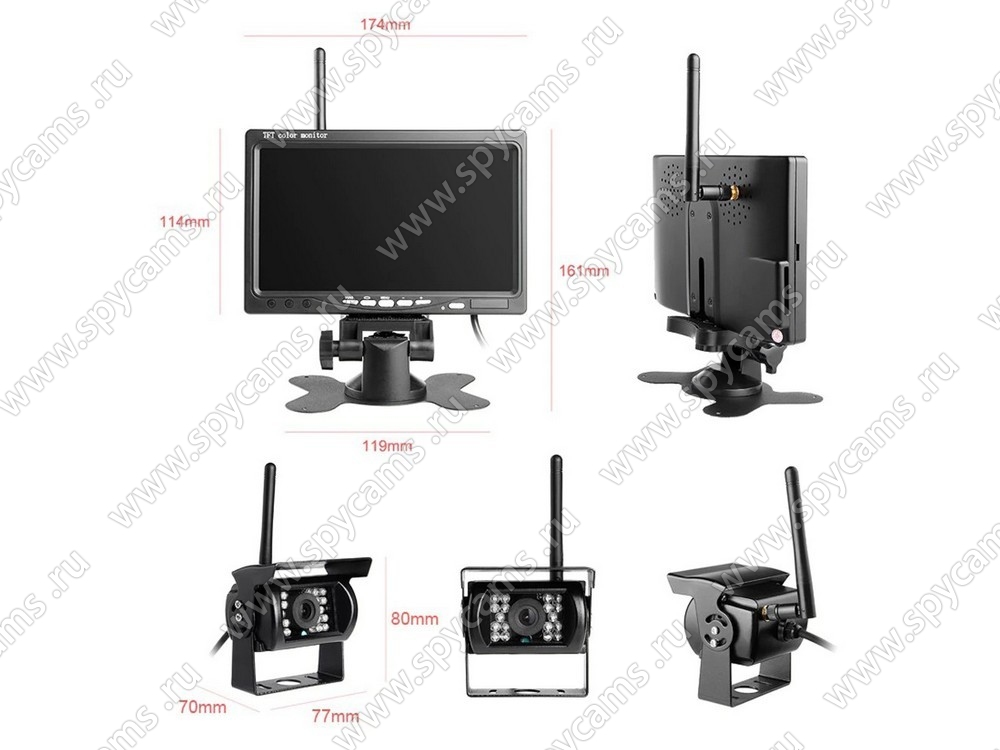Беспроводная камера заднего вида с монитором 7 дюймов MasterPark 607-W для грузовиков и траков - это камера заднего вида для автомобиля и монитор с диагональю дисплея 7 дюймов (~18 см). Передача изображения с камеры на монитор осуществляется по радиоканалу на частоте 2,4 ГГц, благодаря чему не требуется прокладка проводов в салоне или в кузове.